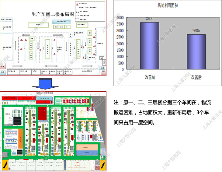 | 场地面积 | 节约15% | 3600㎡ | 2685㎡ | 节约26% | 节省场地 被作为仓 库使用 |