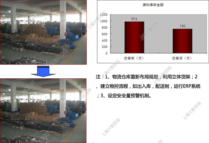 | 原料库存 | 降低30% | 974万 | 790万 | 降低20% | 改善前为 |