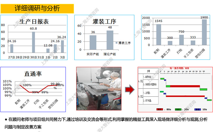 大智咨询在精益生产的培训和咨询方面有相当专业的经验,并且拥有自己成熟的精益生产推行和实施的系统流程和工作方法。这些系统的工作方法不但能够顺利解决企业在向精益生产模式转化过程中的技术问题,还能够有效激发客户员工自身对生产改善的热情和创意。