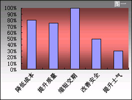 通过美国精益生产协会对1千多家实施精益生产方式的企业进行的调查资料显示,直接节约成本20多亿美元。在大智咨询的合作客户当中,众多企业在这五个方面的平均收益程度达到(如图一)。根据大智咨询对已往服务客户的调查,这些客户在这些衡量指标上的平均收益(如图二)。
